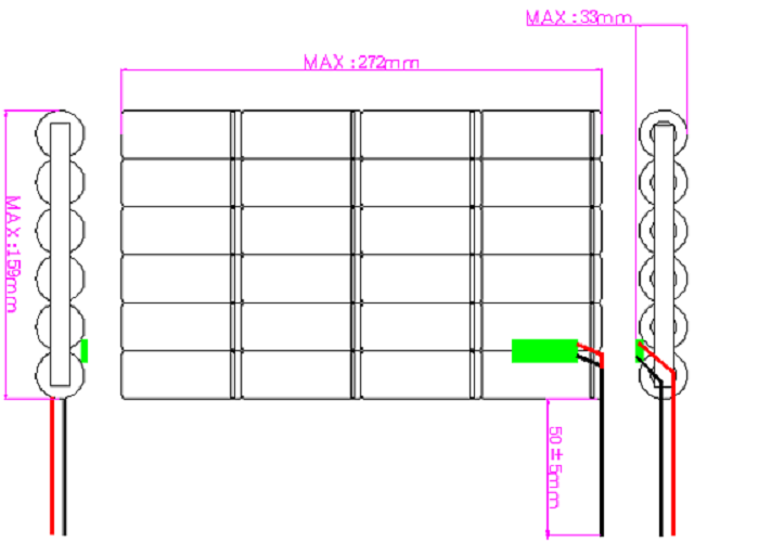 dibujo para paquete de batería 12.8V 18Ah IFR26650 4S6P